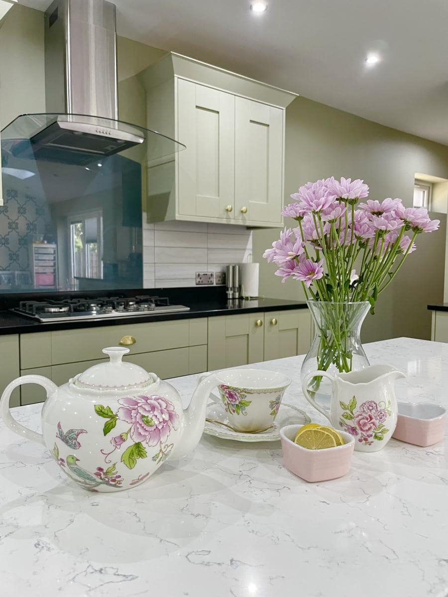 The glass cabinets are perfect for displaying our Client’s special occasion crockery. As you can see, she very kindly made some soothing lemon tea for us when we went to visit.